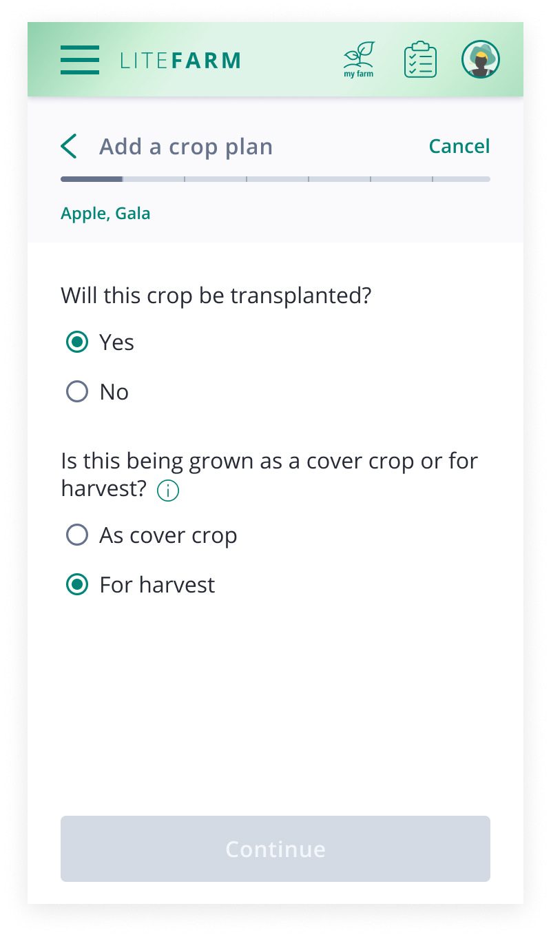 One of the main value propositions LiteFarm wanted to offer their users was a simplified method of applying for various certifications in order to increase their crop value. As part of this objective, I was tasked with re-designing the experience of tracking crops on the farm.